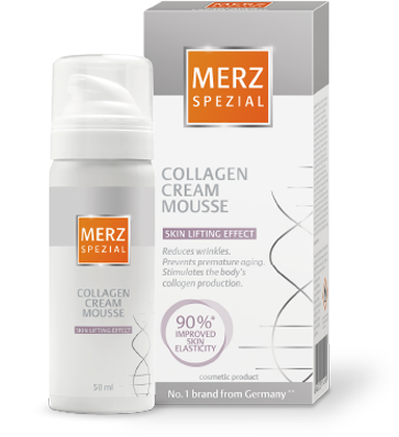 Мерц Специал Крем Мус Колаген (Merz Spezial Collagen Cream Mousse) се състои от уникална комбинация от колаген, витамин С и колаген-активатор с естествен произход.