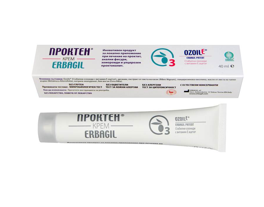 Проктен крем е иновативен продукт за озонотерапия на хемороиди, анални фисури, проктит и улцерозен проктоколит.