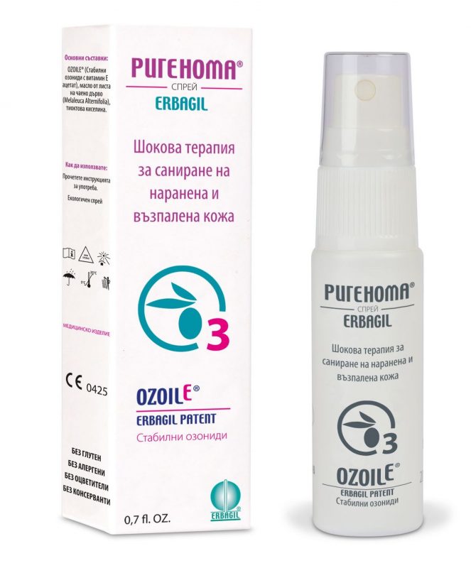 Ригенома спрей съдържа висока концентрация OZOILE® – уникална патентована формула, създадена на основата на озониране до високо насищане с озоно-кислородна смес.