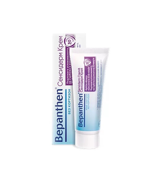 Bepanthen® Сенсидерм Крем е продукт без кортизон, който облекчава сърбежа и зачервяването при кожни раздразнения. Той подпомага естественото възстановяване на бариерната функция на кожата, хидратира и регенерира.