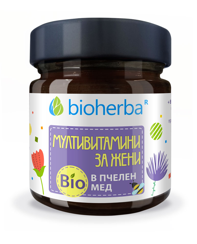 Биохерба Мултивитамини за жени в био пчелен мед е част от иновативната серия хранителни добавки Apitherapy на Биохерба - чисти билкови екстракти, смесени с висококачествен Био сертифициран български пчелен мед. Вкусна и полезна възможност да се възползвате от всички ценни качества на билките и меда, по един изключително приятен начин. Бързо, лесно и вкусно - само една лъжица дневно от този "вкусен еликсир" за имунитет, добро благосъстояние и енергия!