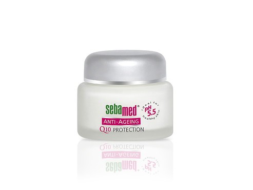 Научен факт е, че кожата започва да старее след 25 години, тя става все по-чувствителна и деликатна. Подходящата грижа за кожата е задължителна профилактика, за да бъде продължена младостта и виталността на Вашата кожа. Лабораториите на Себамед създадоха защитата Q10, която поддържа естествените метаболитни процеси и регенерация на кожата. Активните съставки в протективния крем Q10 се абсорбират бързо и поддържатк равновесието на кожата. Ко-ензима Q10 е основен катализатор, който активира метаболизма на кислорода в клетките. Неговата продукция намалява чувствително след 30 годишна възраст. Пантенолът подпомага саморегенерацията на клетките. Витамин Е неутрализира свободните радикали и UV радиацията, намалява видимо бръчките и предпазва от преждевременно стареене. Сладкото бадемово масло, маслото от шеа и фитостеролите поддържат хидро-липидния баланс на кожата и я правят мека и еластична. Със своето рН 5,5, еднакво с това на здравата кожа, протективният крем Q10 стабилизира нейния естествен защитен слой, предпазващ от възпаления и инфекции. Дерматологично тестван.