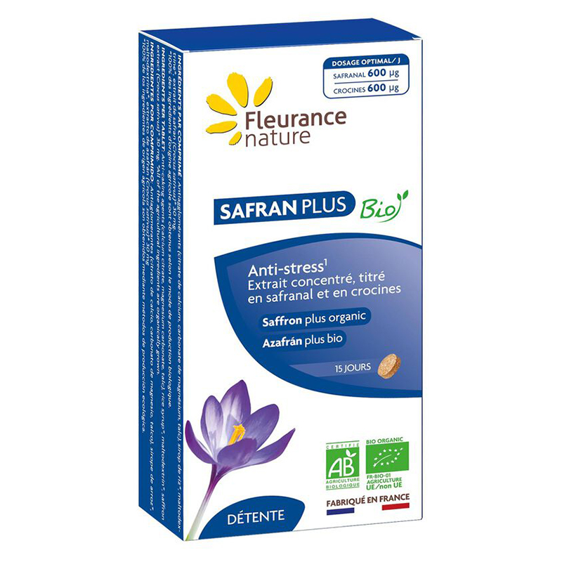 Safran Plus BIO / Шафран, БИО, 15 таблетки е продукт на френската компания Fleurance Nature. Формулата подпомага нормалното състояние на нервната система.