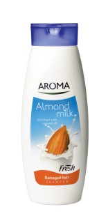 Шампоан Aroma Мляко и Бадем e създаден специално за нуждите на увредената коса. Обогатен с мляко, източник на протеини и витамини, което подобрява структурата и плътността на косъма и бадемово масло за блясък и мекота на косата