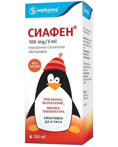 Сиафен перорална суспензия е противовъзпалително, болкоуспокояващо и температуропонижаващо лекарствено средство за употреба в детска възраст. Съдържа активното вещество ибупрофен, което е от групата на нестероидните противовъзпалителни средства (НСПВС).