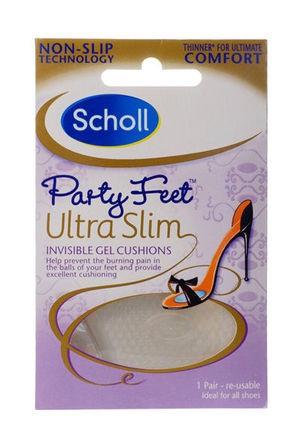 Парещото усещане във възглавничките на стъпалата може наистина да развали удоволствието от носенето на високи токове. За съжаление, то няма да изчезне преди да свалите обувките си. Тази част на стъпалото се превръща в изключително възпалена и чувствителна зона, а при неравна повърхност стъпалото ще усеща всеки оток. Възглавничките Scholl Party Feet намаляват триенето и защитават от образуването на твърда кожа. Ако обувките на високи токчета са част от вашето облекло, Party Feet възглавничката ще се превърне в най-добрата приятелка на краката Ви и винаги ще бъде на разположение, за да избегнете появата на болка още в самото начало. За да се справите с проблема опитайте да осигурите на краката си и редовна почивка.