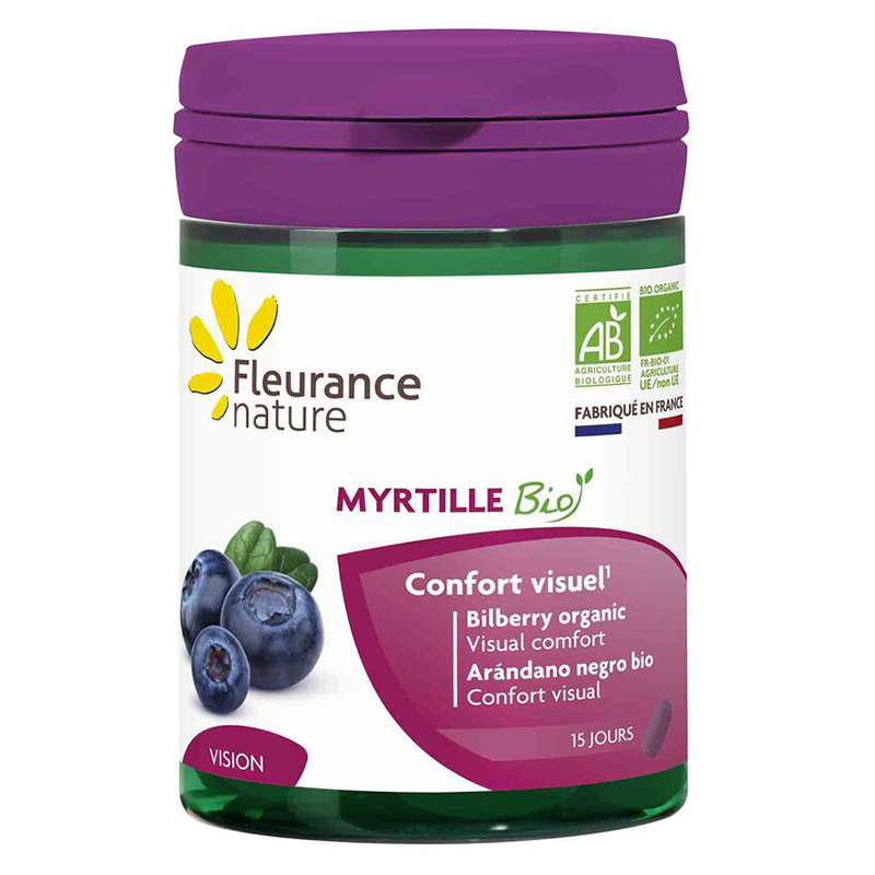 Myrtille BIO / Синя боровинка, 45 таблетки е продукт на френската компания Fleurance Nature. Формулата подпомага поддържането на нормалната микроциркулация, както и нормалното състояние на кръвоносните съдове и зрението. Хранителната добавка съдържа сини боровинки (Vaccinium myrtillus), които са известни с многобройните си здравословни ползи.