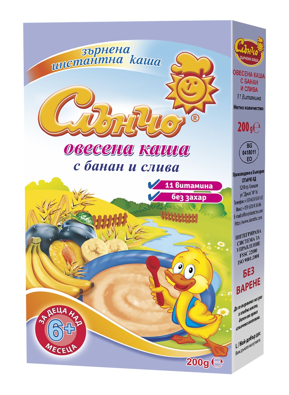 Слънчо овесена каша с банан и слива е обогатена с 11 витамина и съдържа като естествени съставки незаменими аминокиселини, ненаситени мастни киселини и микроелементи, необходими за задоволяване на хранителните потребности на Вашето дете.