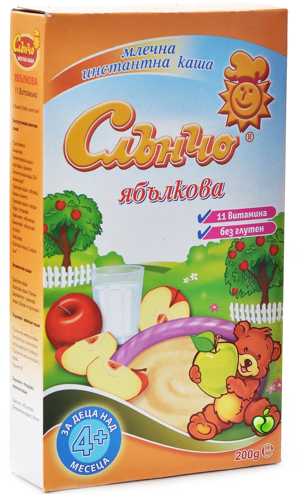 Слънчо ябълково - млечна каша не съдържа глутен, оцветители, консерванти и ароматизанти.