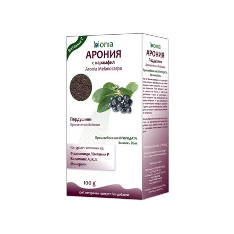 Биониа Арония е 100% натурален продукт, поради което посочените стойности на витамини и минерали е възможно да варират. Като поливитаминозен продукт аронията се използва като хранителна добавка към дневното меню и не е заместител на разнообразното хранене. Съдържа <1% натурален карамфил.