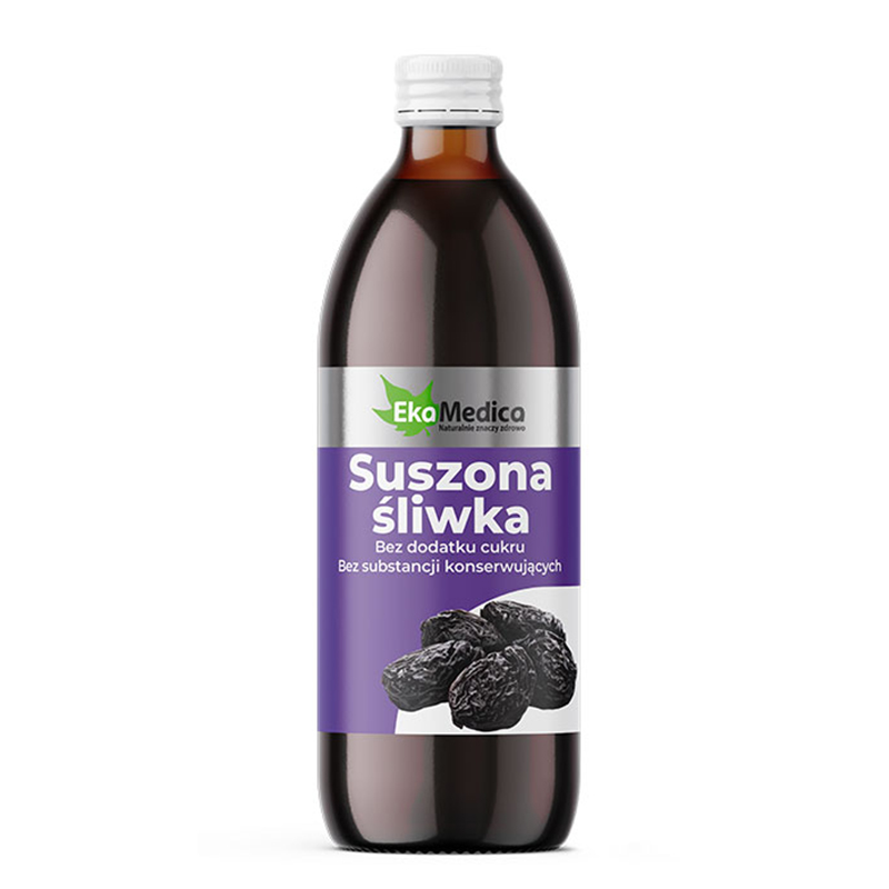 Śliwka suszona 0,5 l Suplement Diety e течна хранителна добавка, произведена от 100% сок от сушени сливи с добавка на натурален витамин С, извлечен от екстракт от плодовете на каму-каму. Ефективна е при отслабена имунна система, хипертония, атеросклероза, ревматизъм и подагра, както и за цялостно укрепване и тонизиране на организма.
