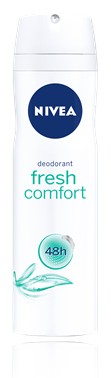 NIVEA DEODORANT FRESH Comfort e с елегантен, зелен и чист аромат за едно дълготрайно усещане за свежест. Осигурява ефективна 48-часово чувство на свежест и защита от поява на неприятна миризма. Оптимална комбинация от надеждна защита и нежна грижа.