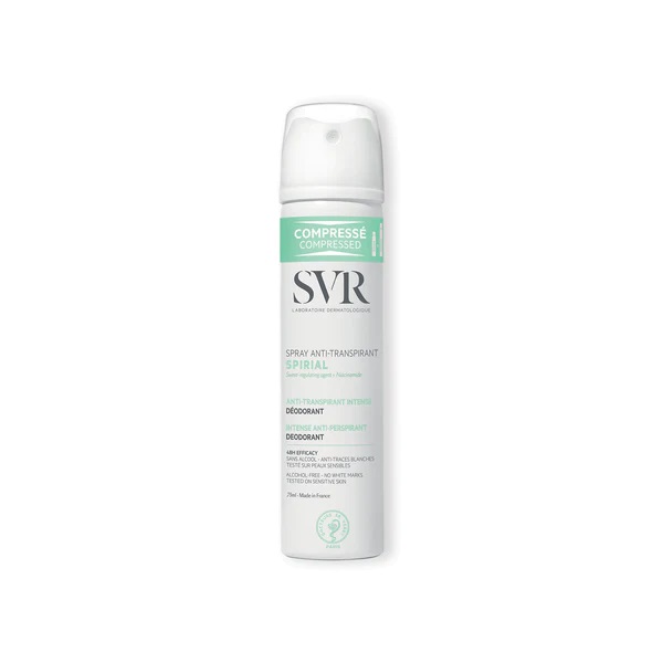 Благодарение на комбинацията от алуминиеви соли, ограничаващи потоотделянето, без да запушват жлезите и триетил цитрат, инхибитор на миризмата, SPIRIAL SPRAY регулира прекомерното изпотяване и предотвратява появата на неприятни миризми.
