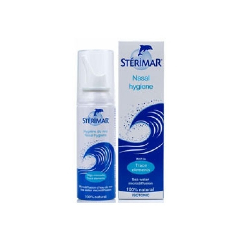 Освен това, секретите често са източник на зарази в областта на носа, ушите и гърлото, тъй като са благоприятна среда за развитието на патогенни микроорганизми.В резултата на финото микроразпръскване STERIMAR допринася за отпушването и нежното почистване на носните входове и предотвратява връщането на секретите в носоглътката. STERIMAR облекчава дишането. STERIMAR е изотоничен разтвор на морска вода, съдържащ морски минерални соли и олигоелементи.Свойства:STERIMAR може да се използва за ежедневна хигиена на носа при кърмачета, деца и възрастни.Морската вода е взета от дълбочина на разстояние повече от 11 км от морския бряг, в райони, които не са замърсени от крайбрежието. След проверка за чистота, морската вода се стерилизира и се преработва до физиологична.Начин на употреба и приложение:STERIMAR е природен продукт, предназначен:За ежедневна хигиена на носа:да се възстанови естествената влажност на носа (срещу последиците на климатичните инсталации, централното отопление, хъркането и други);да се подготви и улесни въздействието на определени медикаменти за нос;да се почисти носа от секретите;За профилактика на заболявания на УНГ;За почистване на лигавицата при запушен нос.Благодарение на финия микроспрей STERIMAR:Нежно овлажнява носа;Увеличава времето за контакт между разтвора и лигавицата на носа, като по този начин улеснява абсорбирането на морските минерални соли и олигоелементи.STERIMAR може да се използва във всякакво положение на тялото. Специалният анатомичен накрайник е безопасен и подходящ както за малките ноздри на кърмачетата, така и за възрастни.Дръпнете предпазната капачка нагоре;Внимателно въведете накрайника във входа на ноздрата;Упражнете бърз натиск върху накрайника;Оставете излишъка от разтвора да изтече, който от своя страна ще увлече секретите и издухайте носа;Измийте накрайника с вода и сапун, изплакването го и го подсушете.От 2 до 6 впръсквания дневно във всяка ноздра. STERIMAR е естествен продукт без консерванти и може да се използва продължително време.Състав:STERIMAR, който е 100% естествен продукт, е изотоничен* разтвор на морска вода, съчетаващ известното благоприятно въздействие на морските минерални соли и олигоелементите: мед, желязо, манган, селен, цинк и др.*Изотоничен разтвор: разтвор със същата концентрация на сол като тази в човешкото тяло.Морска вода: 31.82 ml на 100 ml.Флаконът е под налягане на инертен газ (азот).Разтворът не влиза в контакт с азота.Съд под налягане, да не се излага на слънчева светлина.Да не се излага на температура над 50 ºСДа не се пробива и пали, дори и празен.