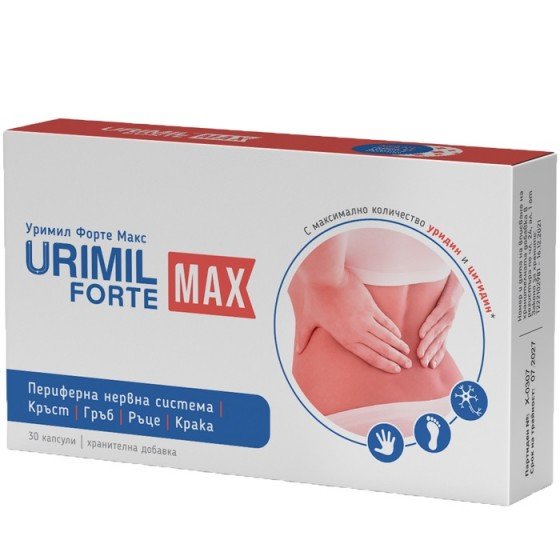 Уримил Форте Макс подпомага нормалното функциониране на периферната нервна система и поддържане на нормалната функция на мускулите. Всяка капсула съдържа оптимално количество от 9 активни съставки, често използвани заедно или поотделно за повлияване на болкови състояния.