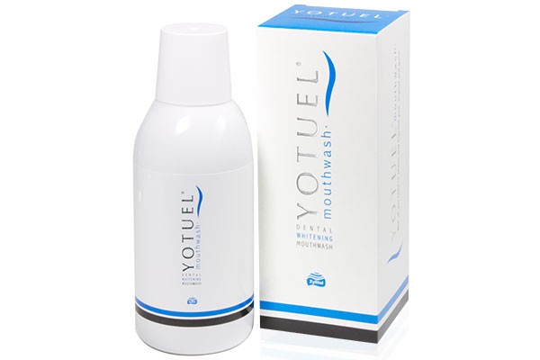 YOTUEL избелваща вода за уста с 0% алкохол избелва и заздравява зъбите, освежава дъха и се бори с появата на плака. Плакнете устата си с 15 мл. в продължение на 1 минута два пъти дневно след измиване на зъбите с паста Yotuel, за да поддържате програмата за здравословно избелване.
