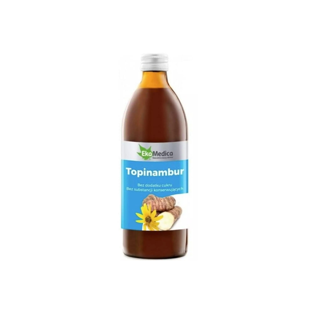 Topinambur / Земна ябълка (Йерусалимски артишок), 500 ml е хранителна добавка на EkaMedica, Полша. Продуктът подпомага дейността на имунната система. Спомага за поддържане на нормално телесно тегло.